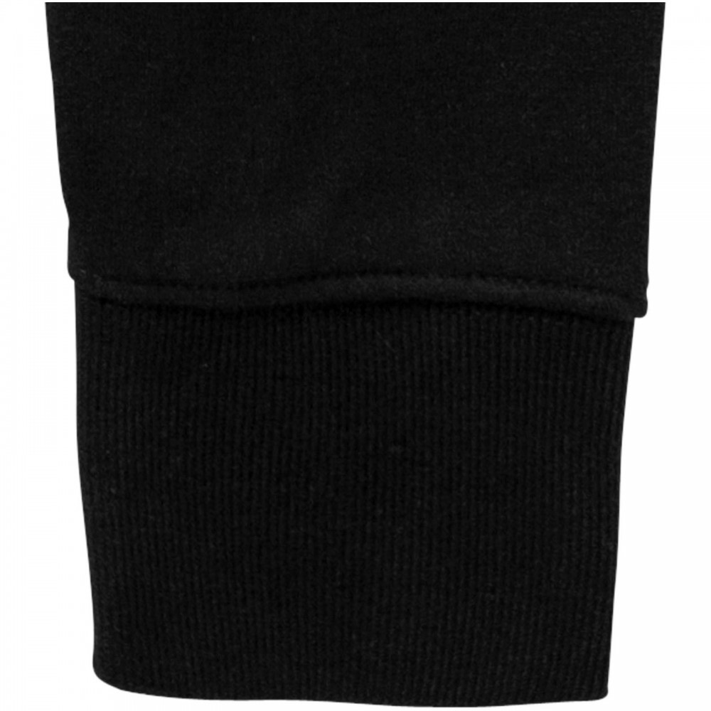 Normál szabásvonal. 2x2-es bordás ujj- és derékpasszé. 2x2-es bordás V-betét a nyaknál. Szatén szalagerősítés válltól vállig. Belül puha, bolyhos felület. Hátul tónusos logónyomat.80% pamut és 20% poliészter, belül bolyhos, kötött anyag. 300 g/m2. Emblémázás: Hímzés, Szitanyomás
