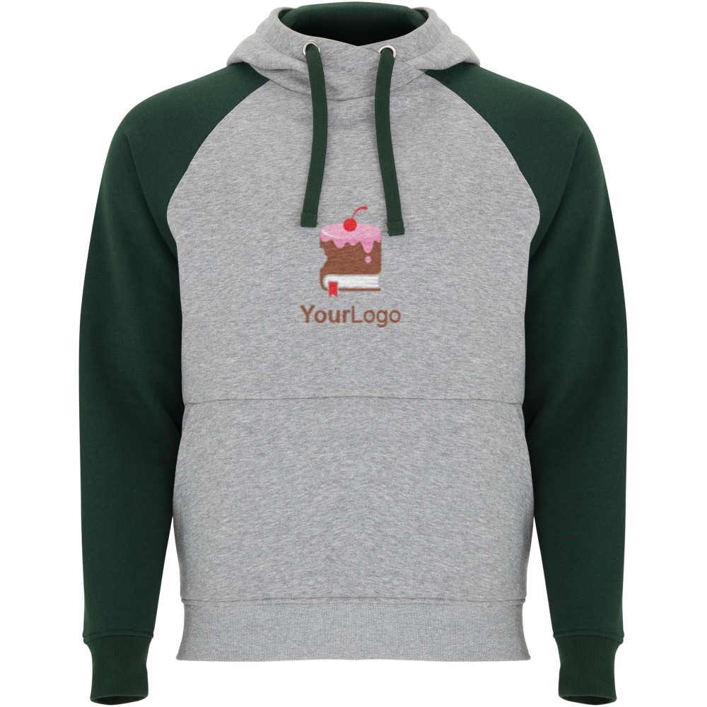 Két színű uniszex kapucnis pulóver. Kapucni keresztezett nyakrésszel és fém kiegészítőkkel. Kontrasztos belső rész a kapucnin, húzózsinór és raglán ujjak. Kenguru zseb. Rugalmas 1x1 passzék és alj. Levehető címke. Emblémázás: Hímzés, Szitanyomás