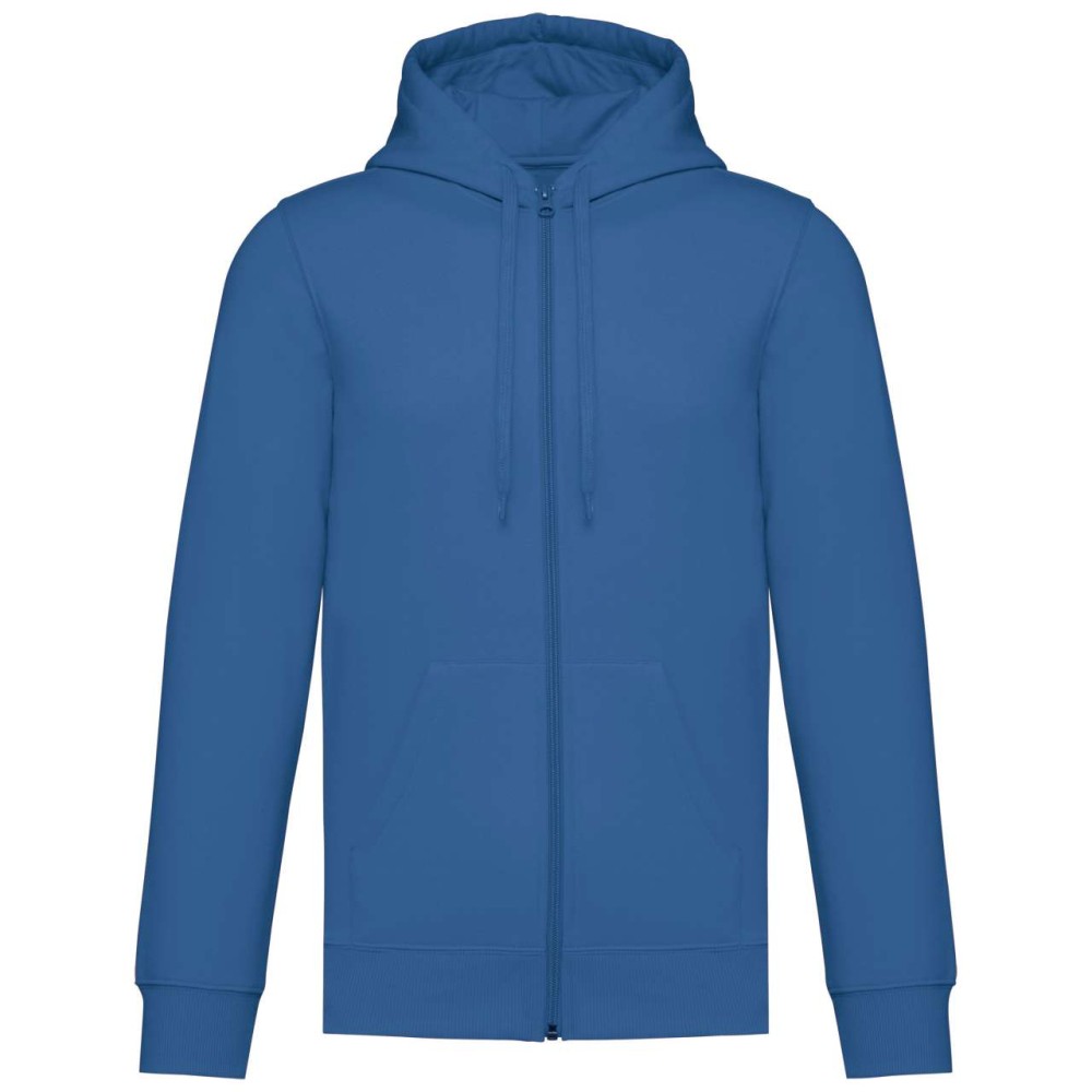 50% gyűrűs fonású pamut / 50% újrahasznosított poliészter, fésült pamut. Egyenes szabású, vágott és varrott. 1x1 bordás kötés a nyakkivágás, a mandzsetta és az alsó szegély jobb megjelenése érdekében. Kenguruzseb, nylon cipzár. Policotton dzsörzé bélésű kapucni lapos húzózsinórral. Színben illeszkedő dzsörzé szalagos belső a nyakkivágásnál. Csak méretcímke márkajelzés nélkül. Emblémázás: Hímzés, Szitanyomás