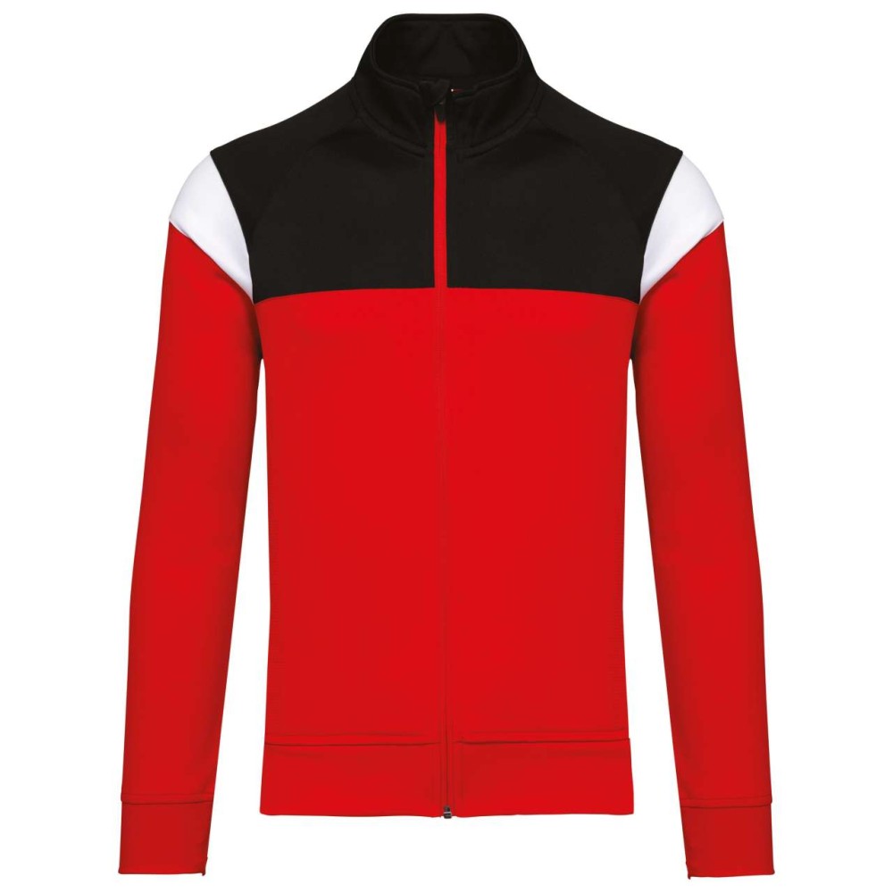 Anyaga: 100% matt poliészter interlock. Egyenes szabás. Elöl fordított cipzáras záródás színazonos nejlonból. Raglán ujjak kontrasztos vállbetétekkel. Kontrasztos mell- és vállkialakítás. Két cipzáras elülső zseb. Texturált anyagbetétek az oldalakon és a hátrészen. Cipzárfedő a felső nyakkivágásnál a nagyobb kényelem érdekében. Könnyen eltávolítható márkajelzés a dekorációhoz. Emblémázás: Hímzés, Szitanyomás