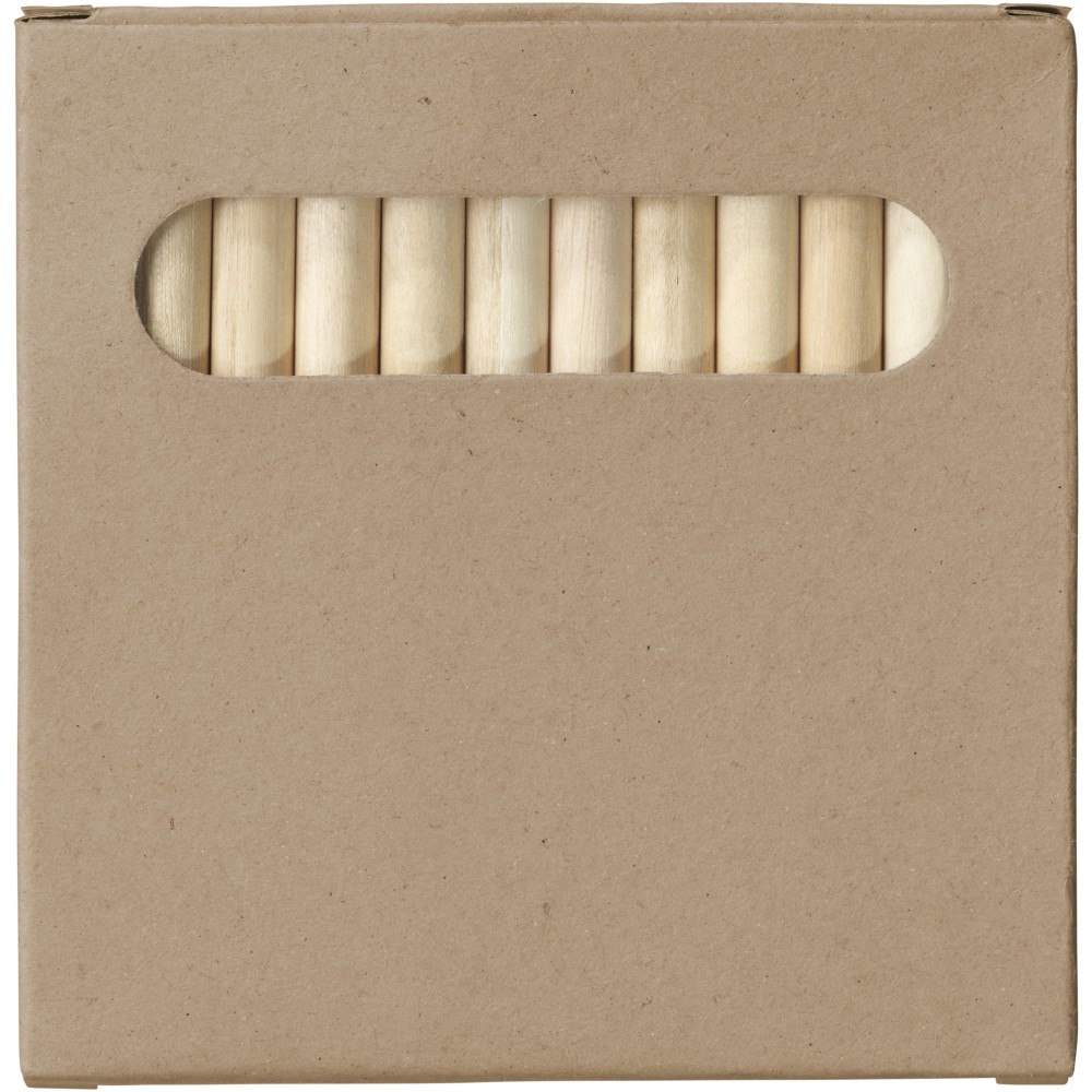 Színező készlet 12 db nyárfából készült ceruzával. A felelősen kezelt erdőkből származó fából készült színezőkészlet választásával fenntarthatóbb és etikusabb gyakorlatokat támogathat a művészeti kellékek előállításában. Csomagolása nátronpapír doboz. Ceruza mérete: 87 x 7 mm. Emblémázás: Tamponnyomás