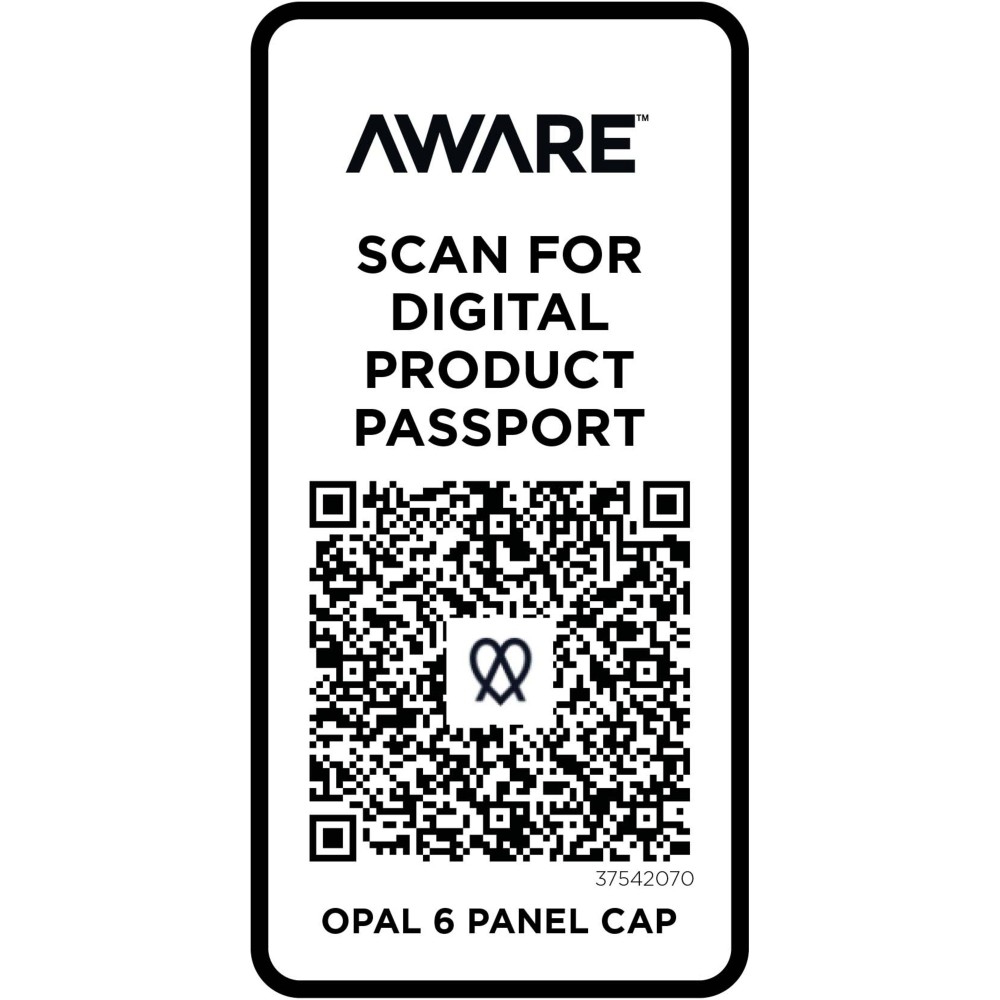 Az Opal 6 paneles sapka 70%-ban újrahasznosított pamutból és 30%-ban újrahasznosított poliészterből készült. Úgy tervezték, hogy 58 cm-es fejkörfogatnál kényelmesen illeszkedjen, a fémcsatos záródás pedig könnyű és biztonságos beállítást tesz lehetővé. A sapka Cyclo újrahasznosított szálakat tartalmaz, ahol előválogatott hulladékot használnak, amely meghatározza a fonal színét. Ezek a szálak nem csak a szűz erőforrások iránti igényt csökkentik, hanem a körkörös élet iránti elkötelezettséget is mutatják, megtestesítve a hulladékcsökkentés lényegét. Minden sapkához egy Aware nyomjelző is tartozik. Ez az innovatív funkció lehetővé teszi a felhasználók számára, hogy egy QR-kód segítségével nyomon követhessék a termék eredetét és útját, növelve az ellátási lánc átláthatóságát, és elősegítve a termék és a gyártási folyamat közötti szorosabb kapcsolatot. Emblémázás: Hímzés, Szitanyomás