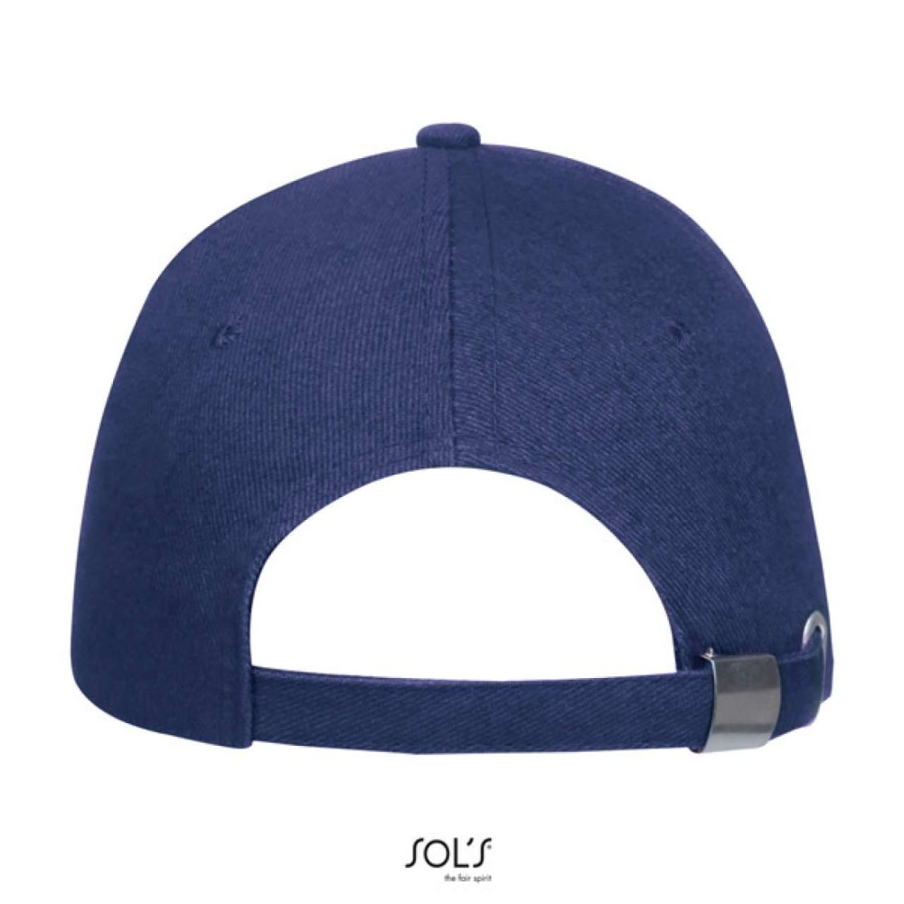 100% pamut vastag anyag, 260 g/m2. Formázott simléder, szellőzőnyílások, fém csattal fejméretre állítható. Emblémázás: Hímzés, Szitanyomás