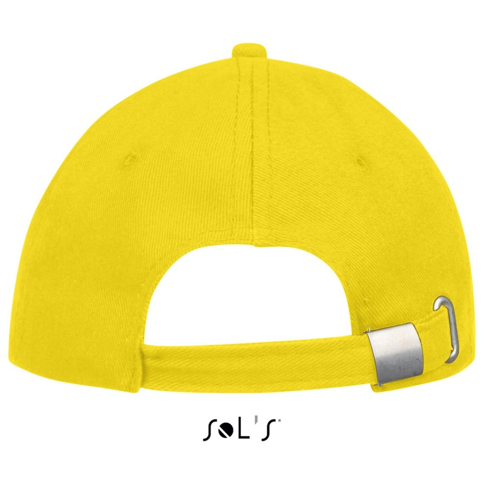 100% pamut vastag anyag, 260 g/m2. Formázott simléder, szellőzőnyílások, fém csattal fejméretre állítható. Emblémázás: Hímzés, Szitanyomás