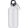 RPET ivópalack csavaros kupakkal, kulcstartóval és karabinerrel. Űrtartalom: 400 ml. Emblémázás: Tamponnyomás