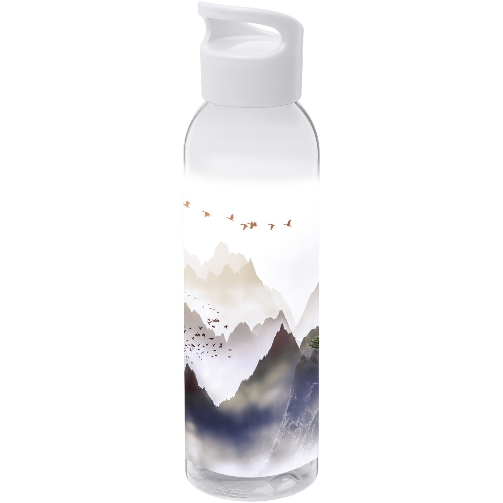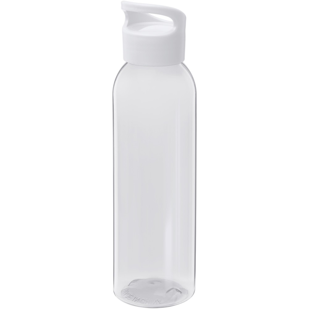 Az átlátszó Sky vizes palack Eastman Tritan anyagból készült, így ez a palack BPA-mentes, könnyű, tartós és ütésálló. Az egyfalú flakon 650 ml folyadékot tud tárolni, és a legtöbb hátizsák oldalzsebébe, valamint a legtöbb autós pohártartóba elfér. A felcsavarható fedél biztosítja a könnyű nyitást és zárást, valamint beépített hordozó fogantyúval rendelkezik. Szivárgásmentes. Szénsavas italokkal nem használható. Mosogatógépben nem mosható és mikrohullámú sütőben történő melegítésre nem alkalmas. Emblémázás: Körszita, Tamponnyomás, UV nyomtatás