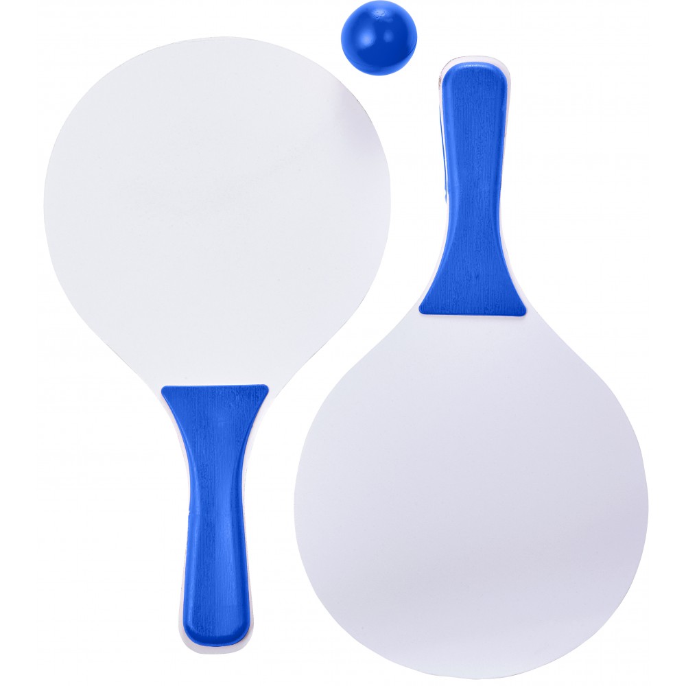 Strandjáték szett fa ütőkkel. Emblémázás: Szitanyomás, Tamponnyomás