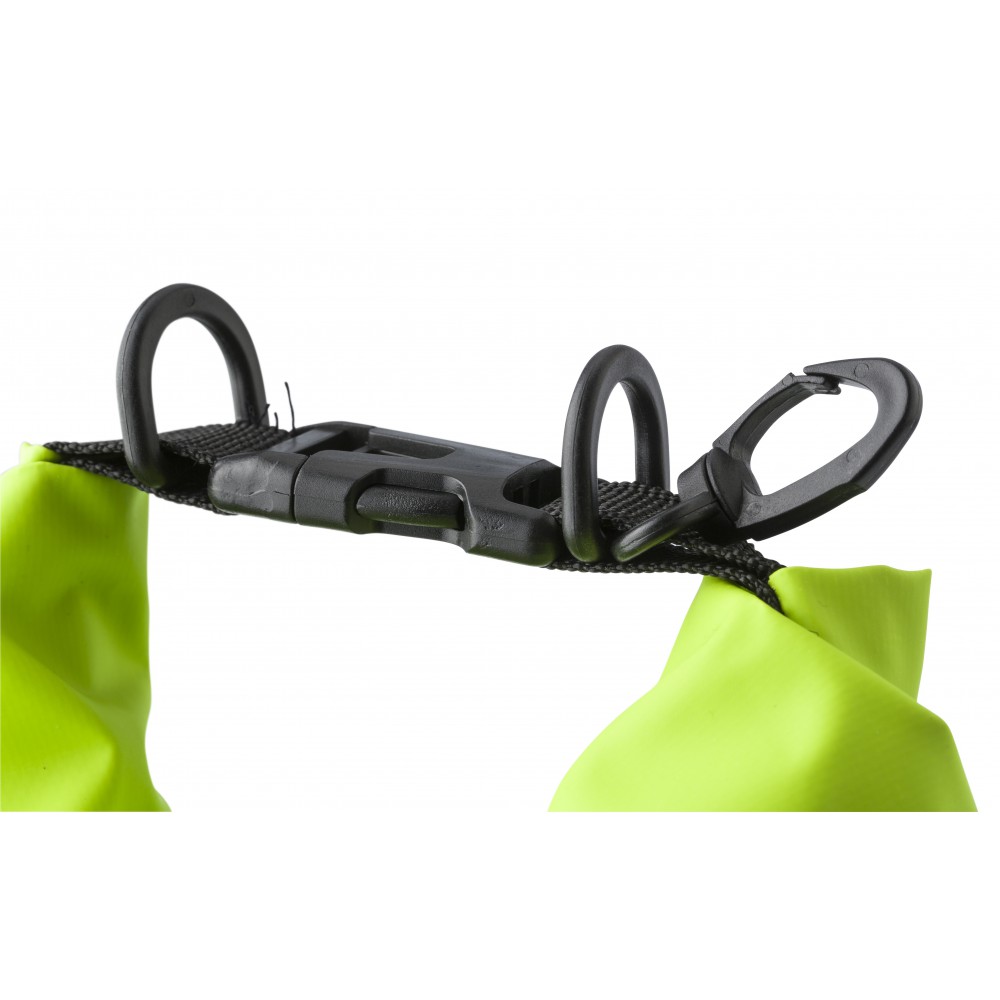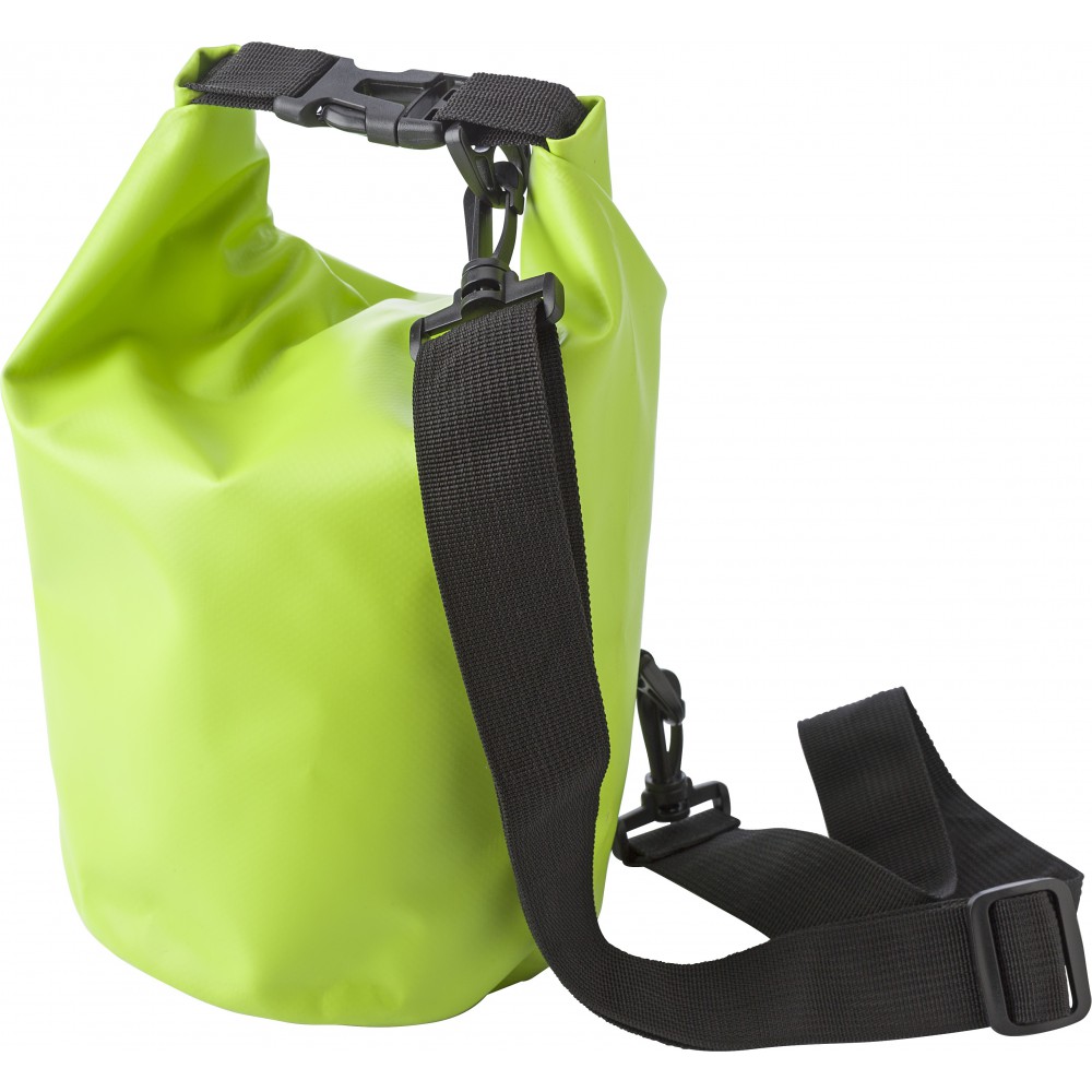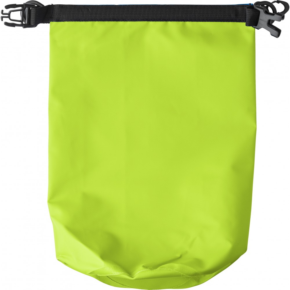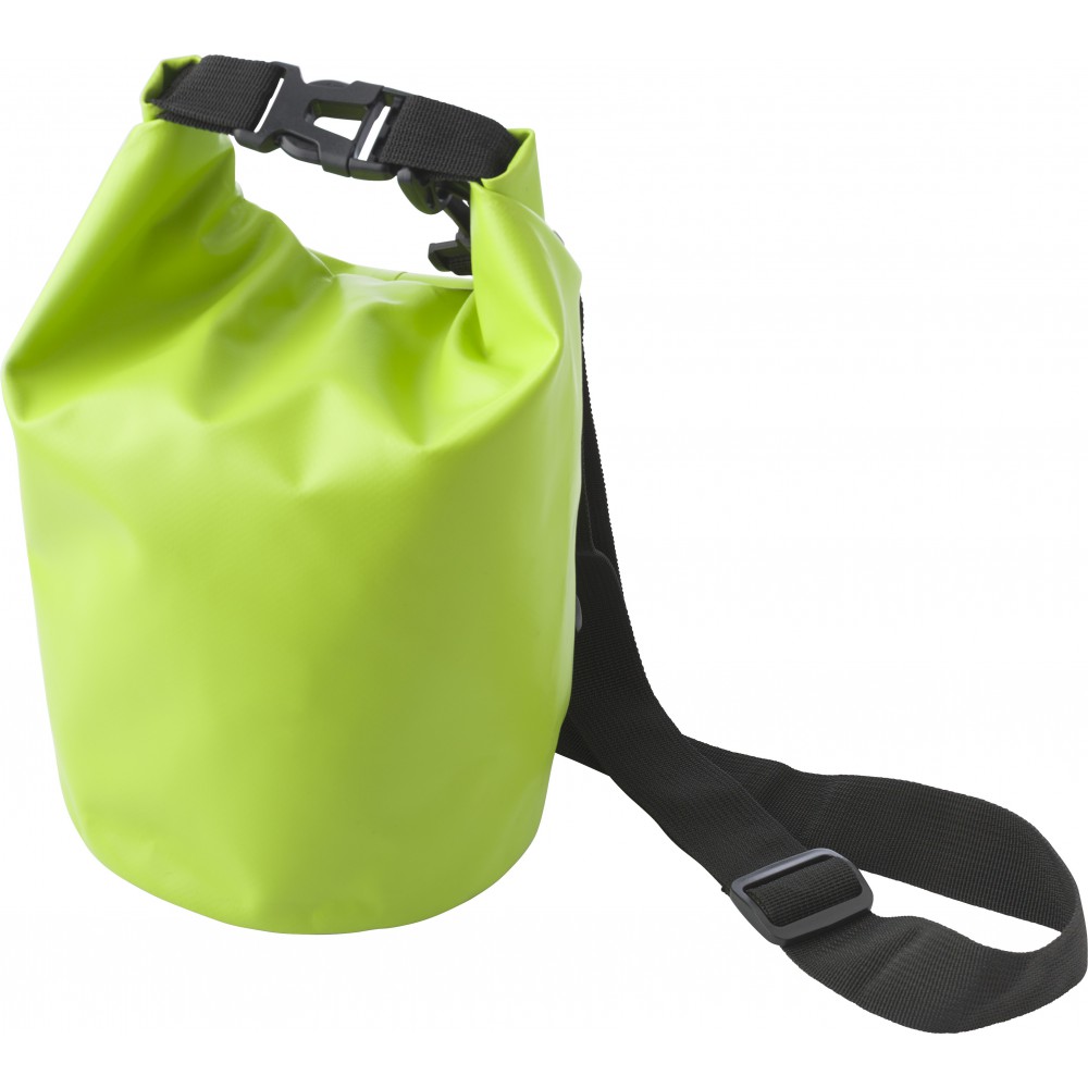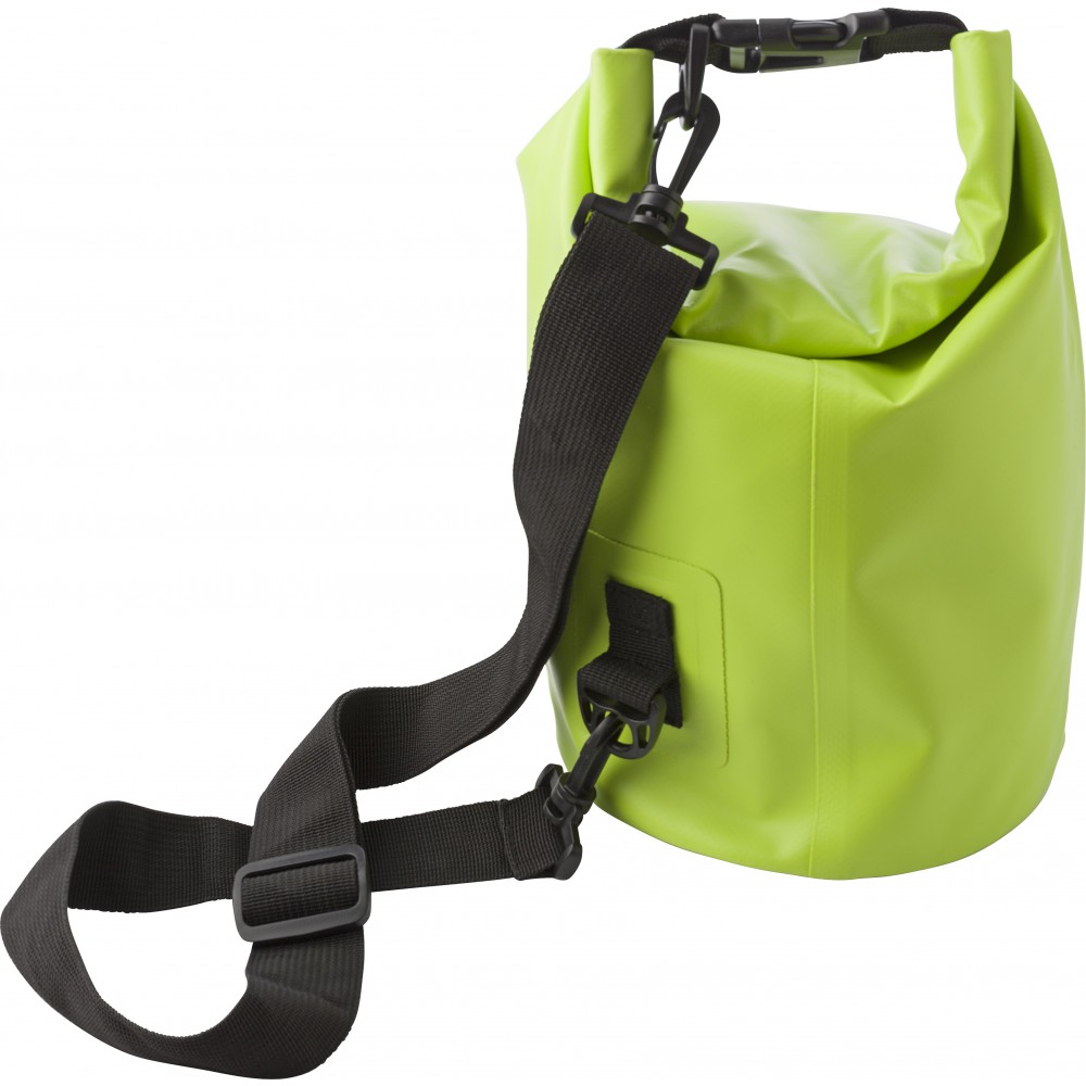 Vízálló táska. Levegővel kell feltölteni, hogy a vízben lebeghessen. Vállpánt nélkül. Emblémázás: Szitanyomás