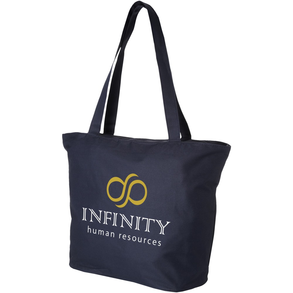 Legyen szó rendezvényről, strandról vagy bevásárlásról, a Panama cipzáras táska a tökéletes többcélú táska. A táska strapabíró 600D poliészterből készült, és egy cipzáras fő rekesszel rendelkezik. A táska belsejében található kis cipzáras zseb helyet biztosít néhány apró tárgynak, például tollnak vagy kulcsoknak. Fülek magassága 34 cm, így vállon is hordható. Emblémázás: Szitanyomás