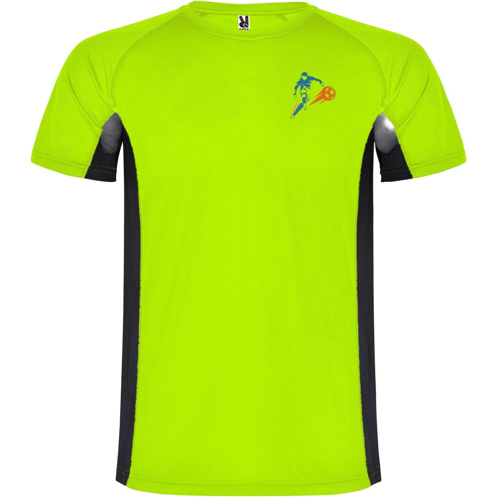 Roly Shanghai rövid ujjú férfi sportpóló, fluor green, solid black