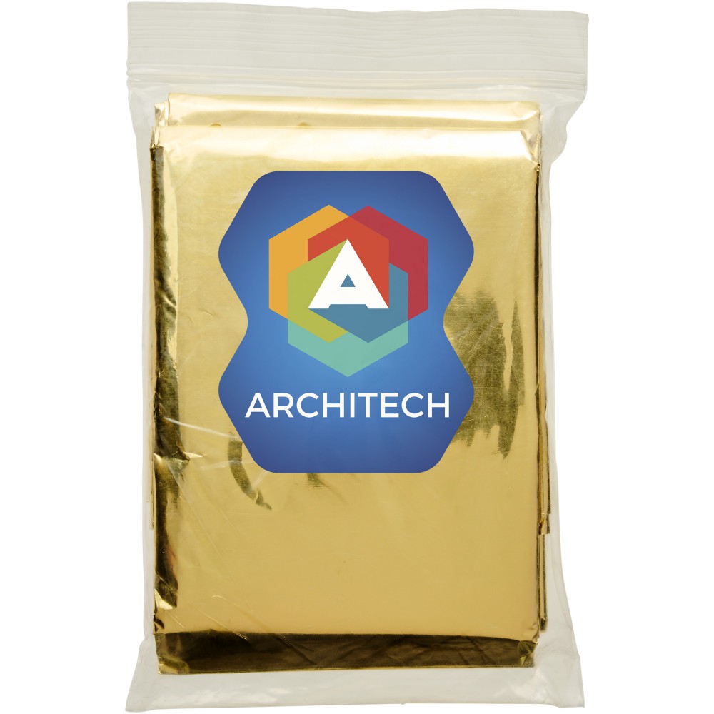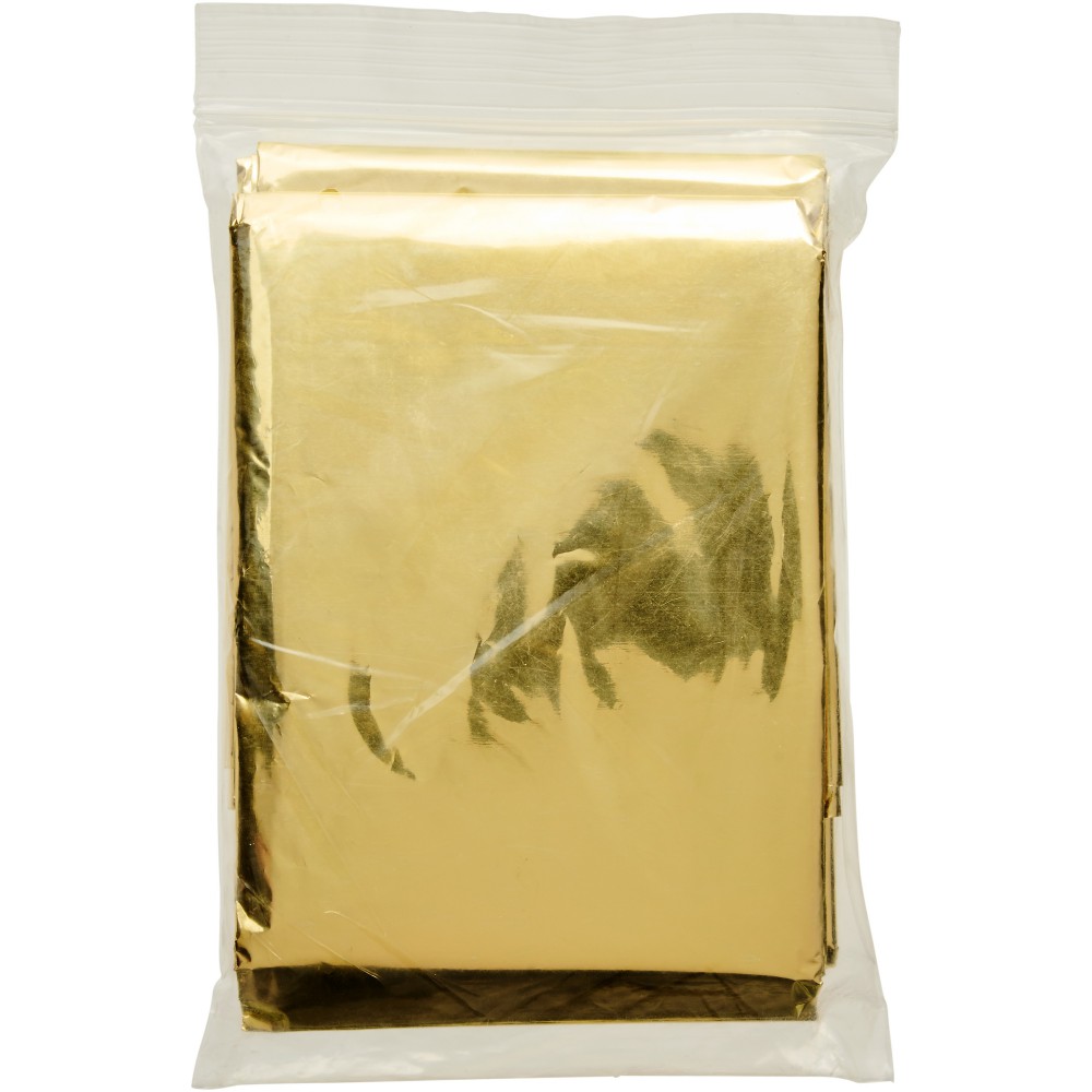 Kétfunkciós vészhelyzeti takaró. A hideg, meleg és nedvesség ellen egyaránt véd. Ha az ezüst színű felület értintkezik a testtel, akkor a hideg ellen véd, ha az arany színű, akkor a meleg ellen véd. Takaró mérete: 160x210 cm. Engedély száma: MDD 93/42/EEC, 1993. július 14. PET. Emblémázás: Matricázás