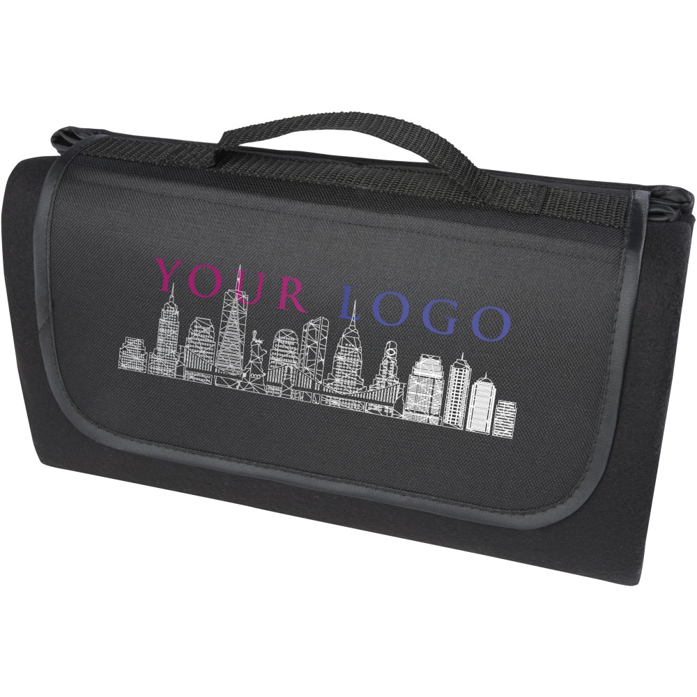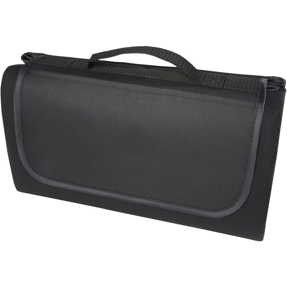 Vízálló, 140 g/m2-es pikniktakaró újrahasznosított PET műanyagból, fenntartható választás. Összecsukva és rögzítve a takaró könnyen tárolható és hordozható a mellékelt fogantyúval. Emblémázás: Szitanyomás
