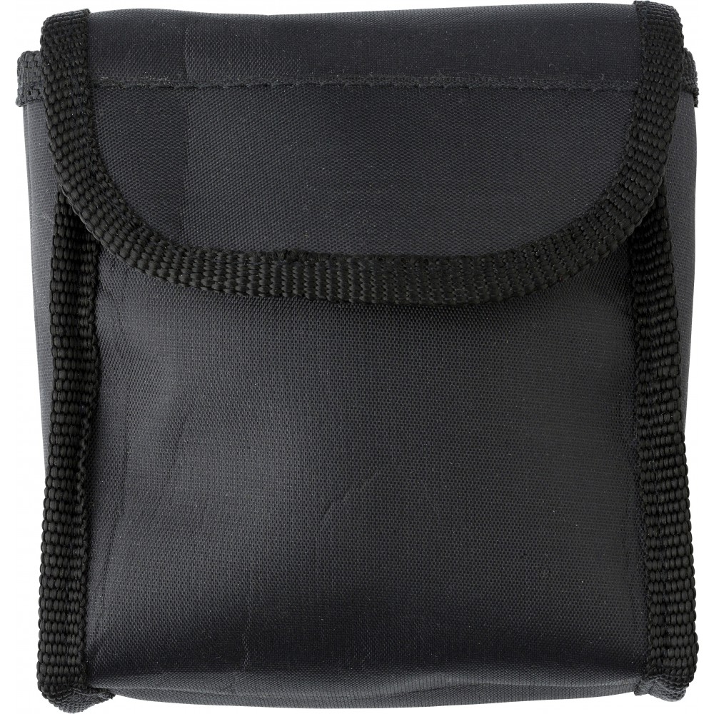 Műanyag és gumi 4 x 30-as látcső, tisztítókendővel, övre húzható nylon tokban. Emblémázás: Tamponnyomás