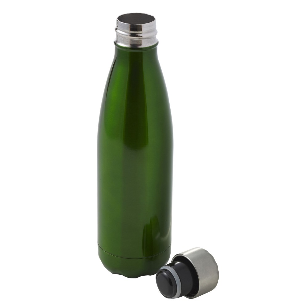Egyfalas palack csavaros kupakkal. Űrtartalom: 650 ml. Nem szivárgásmentes. Mosogatógépben nem tisztítható. Rozsdamentes acél. Emblémázás: Bögredekor, Gravírozás, Körszita, Tamponnyomás