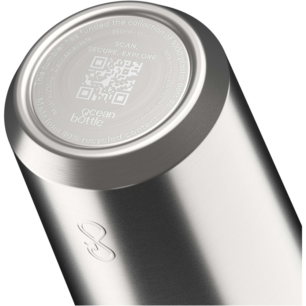 Az Ocean Bottle 350 ml-es pohár duplafalú szigeteléssel rendelkezik, amely az italokat akár négy órán keresztül melegen, és akár tíz órán keresztül hidegen tartja. Tökéletesen illeszkedik a legtöbb kávéfőző alá és az autós pohártartókba is. Minden pohár teljes mértékben szénsemleges, és 1,000 műanyag palackot gyűjt össze, hogy javítsa a part menti közösségek életkörülményeit. A pohár 90%-ban újrahasznosított rozsdamentes acélból és egyéb újrahasznosított anyagokból készült. Felelősen beszerzett újrahasznosított kartondobozban szállítjuk. Emblémázás: Bögredekor