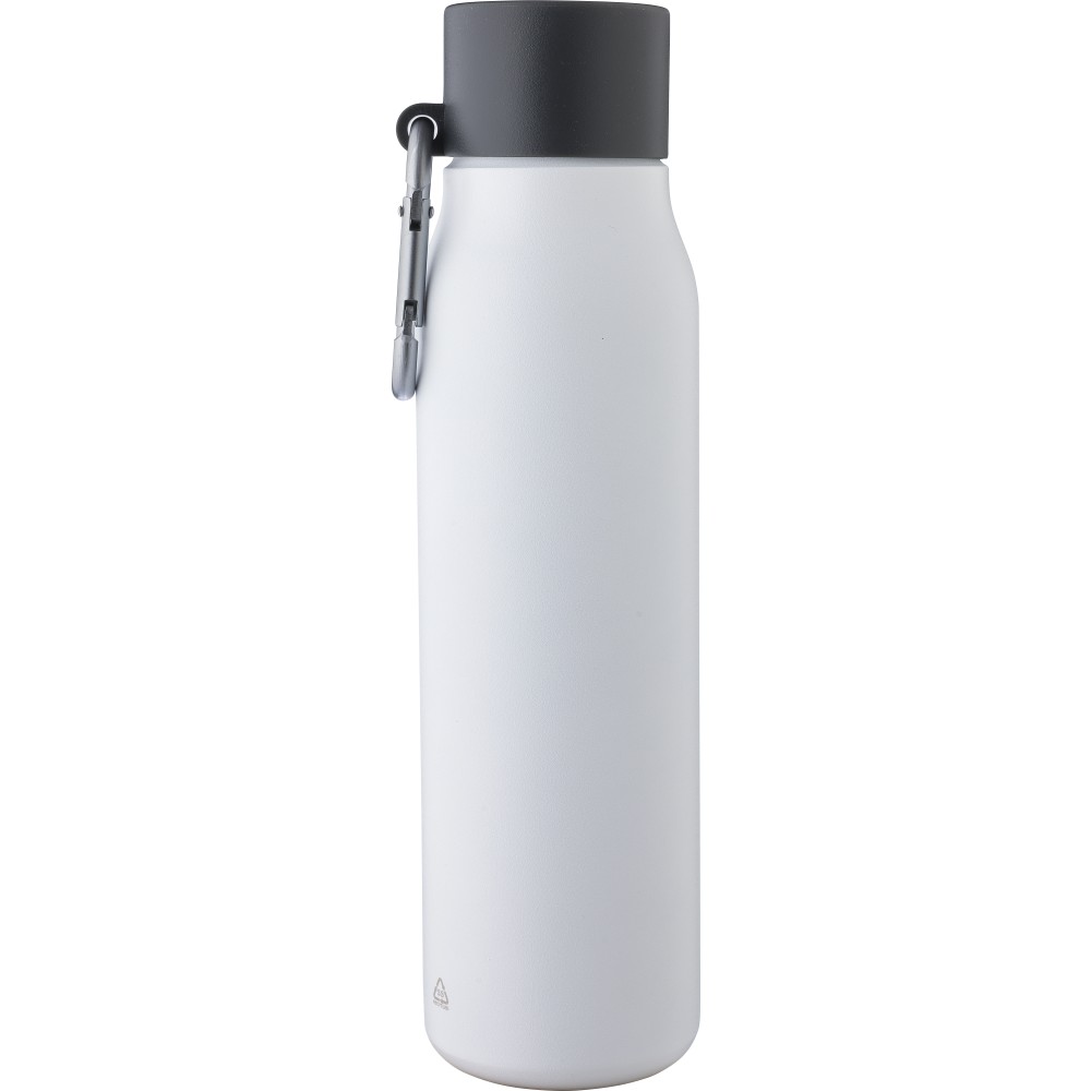 Újrahasznosított rozsdamentes acélból készült palack (600 ml-es). A belső anyaga 304-es, a külső anyaga pedig 201-es rozsdamentes acél. Szivárgásmentes PP kupakkal és alumínium karabinerrel. A karabiner mászáshoz nem alkalmas. A palack a benne tárolt italt 6 órán át melegen vagy 9 órán át hidegen tartja. Az újrahasznosított anyagra utaló logó a palackra van gravírozva. Csomagolása barna papírdoboz. Emblémázás: Gravírozás, Körszita, Tamponnyomás