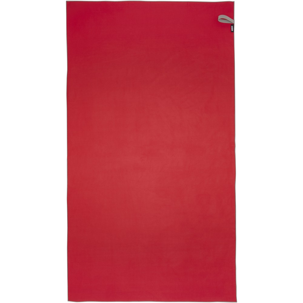 A Pieter sporttörülköző nagyon jó nedvszívó, könnyű, gyorsan szárad, az anyaga pedig tartós és rendkívül puha. Ha a törölközőt összehajtjuk és gumiszalaggal rögzítjük, kis méretűre csomagolható, így alkalmas arra, hogy magunkkal vigyük az edzőterembe, uszodába, vagy ha hátizsákos túrára, esetleg kempingezésre megyünk. A törülköző 100 x 180 cm méretű, 90% GRS újrahasznosított poliészterből és 10% nejlonból készült, és 40 °C-on mosható mosógépben. Újrahasznosított PET műanyagból készült tároló tasakkal (25 x 8,5 cm) szállítjuk. Emblémázás: Hímzés, Szitanyomás