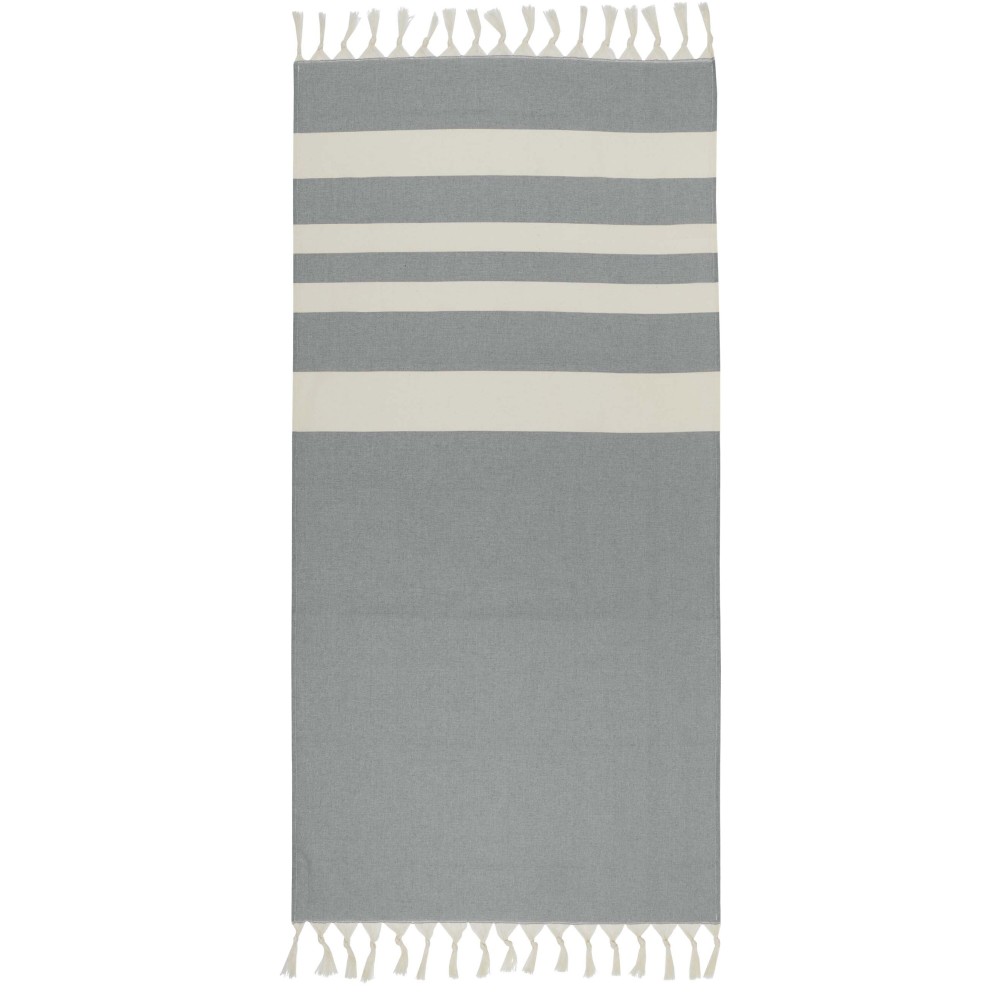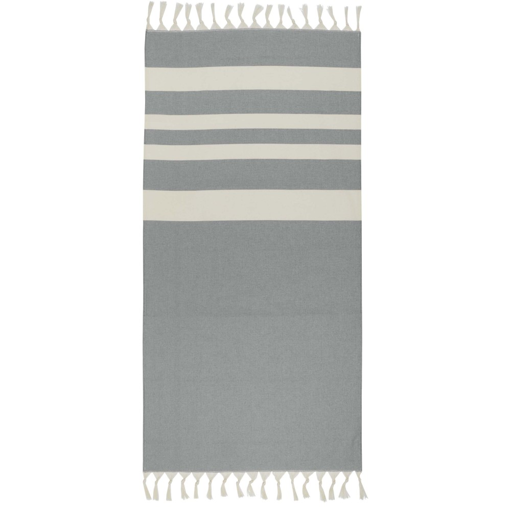 Az Anders hammam törölköző luxus kényelmet nyújt nagy méreteivel (147 x 75,5 cm), biztosítva a megfelelő takarást, akár a medence mellett pihensz, akár a tengerparton töltöd a napot. A törölköző mindkét végén elegáns bojtokkal van díszítve, anyaga 30% pamut, 35% GRS tanúsítvánnyal rendelkező újrahasznosított pamut és 35% GRS tanúsítvánnyal rendelkező újrahasznosított poliészter. 180 g/m2. Emblémázás: Hímzés, Szitanyomás