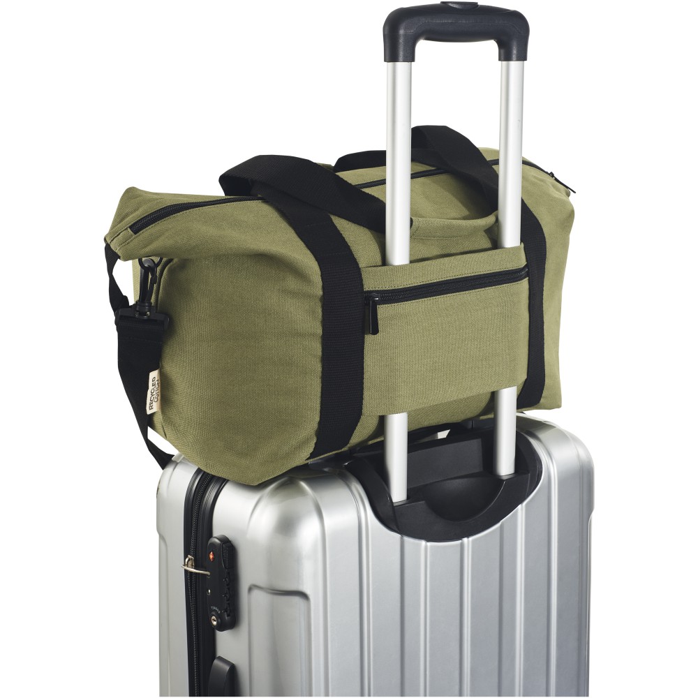 A rendkívül tartós és fenntartható anyagokból, GRS újrahasznosított vászonból és GRS RPET béléssel készült 25 literes Joey sporttáska tágas, cipzáras főrekesszel és egy belső cipzáras zsebbel rendelkezik a biztonság érdekében. Egy nyitott elülső zseb és egy másik pántos cipzáras zseb hátul, valamint megerősített hevederes fogókkal vagy a levehető és állítható vállpánttal a kényelem érdekében. Emblémázás: Szitanyomás