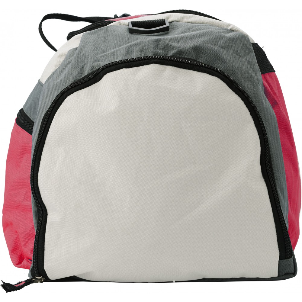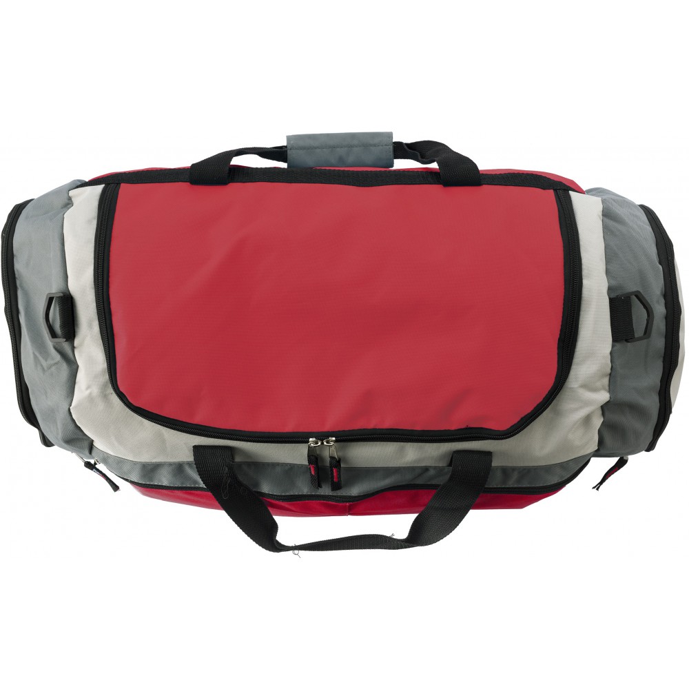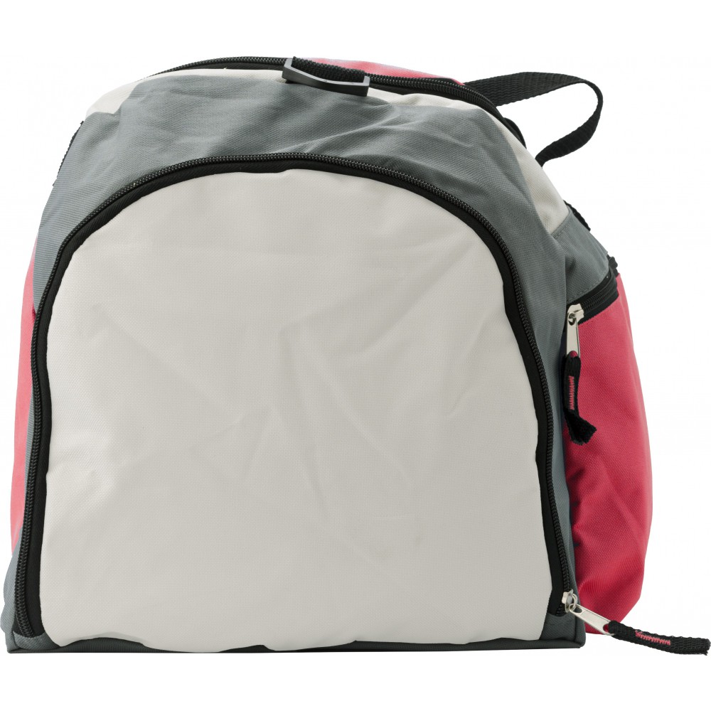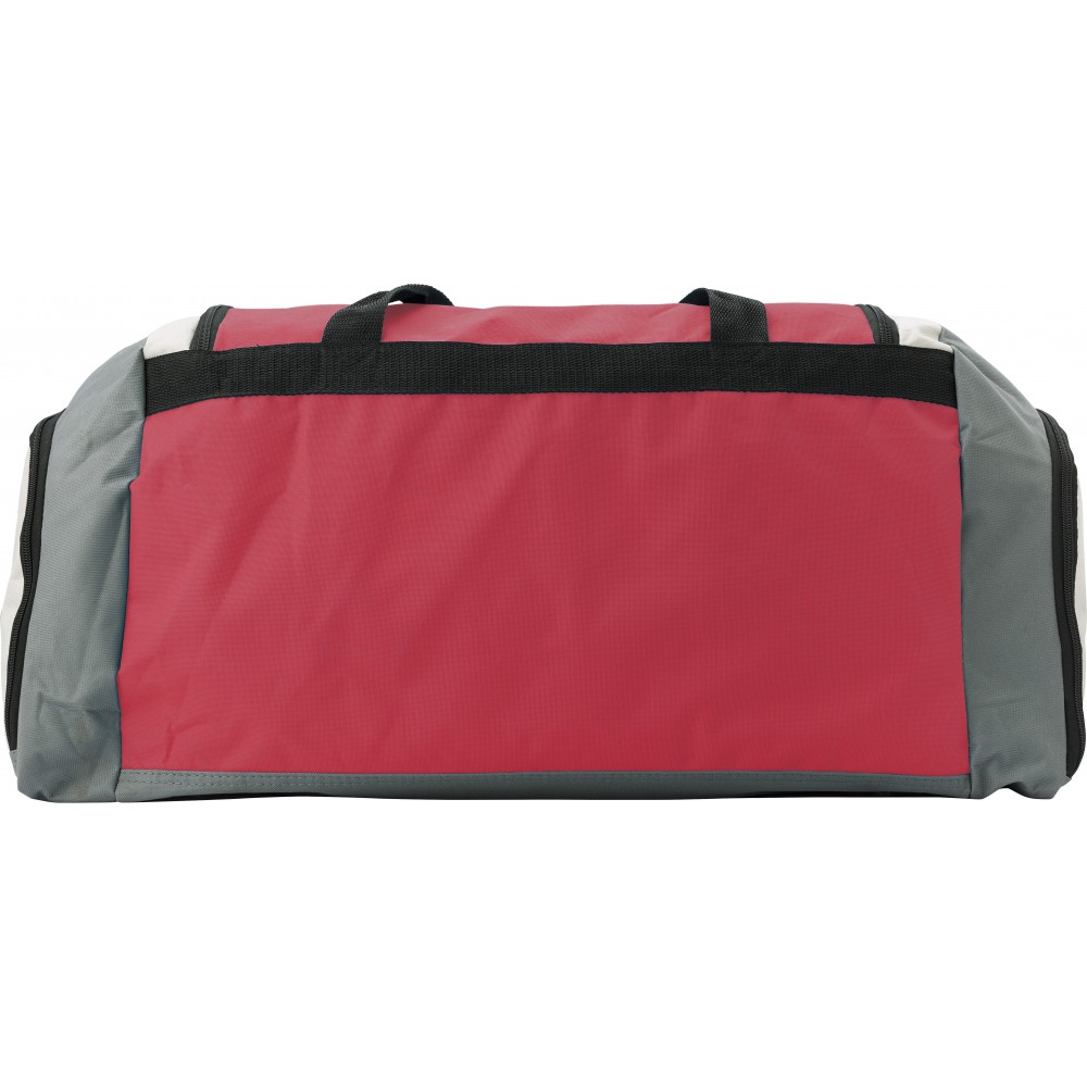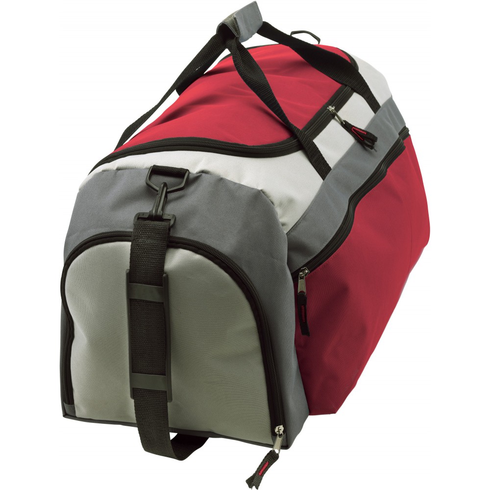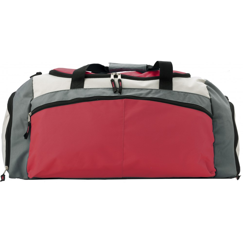 Nagy sporttáska két cipzáras zsebbel a táska végén és egy zsebbel az elején, állítható vállpánttal. Emblémázás: Szitanyomás