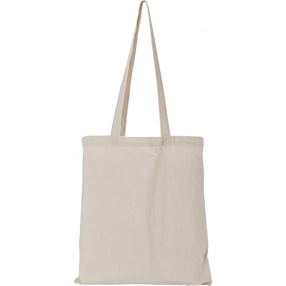 Bevásárlótáska hosszú füllel. 135 g/m2 pamut. Emblémázás: Szitanyomás