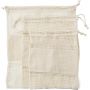 Többször használható, 3 darabos, hálós pamuttáska szett, stílusban illeszkedő kraftpapír csomagolásban. A táskák húzózsinórral zárhatóak és a sima pamut felület teret hagy az emblémázásnak. Emblémázás: Szitanyomás, Tamponnyomás