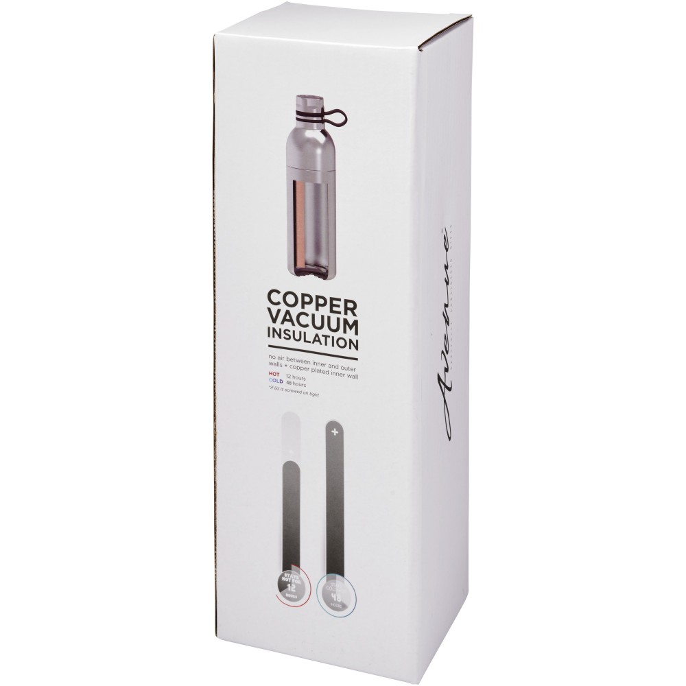 Duplafalú vákuumos, réz szigetelésű palack. Hidegtartó képesség 48 óra, melegtartó képesség 12 óra. A duplafalas kialakításnak köszönhetően nincs párakipacsódás. Szivárgásmentes. Szénsavas italokkal nem használható. Mosogatógépben nem mosható és mikrohullámú sütőben történő melegítésre nem alkalmas. Űrtartalom: 590 ml. Csomagolása Avenue ajándékdoboz. Rozsdamentes acél. Emblémázás: Gravírozás
