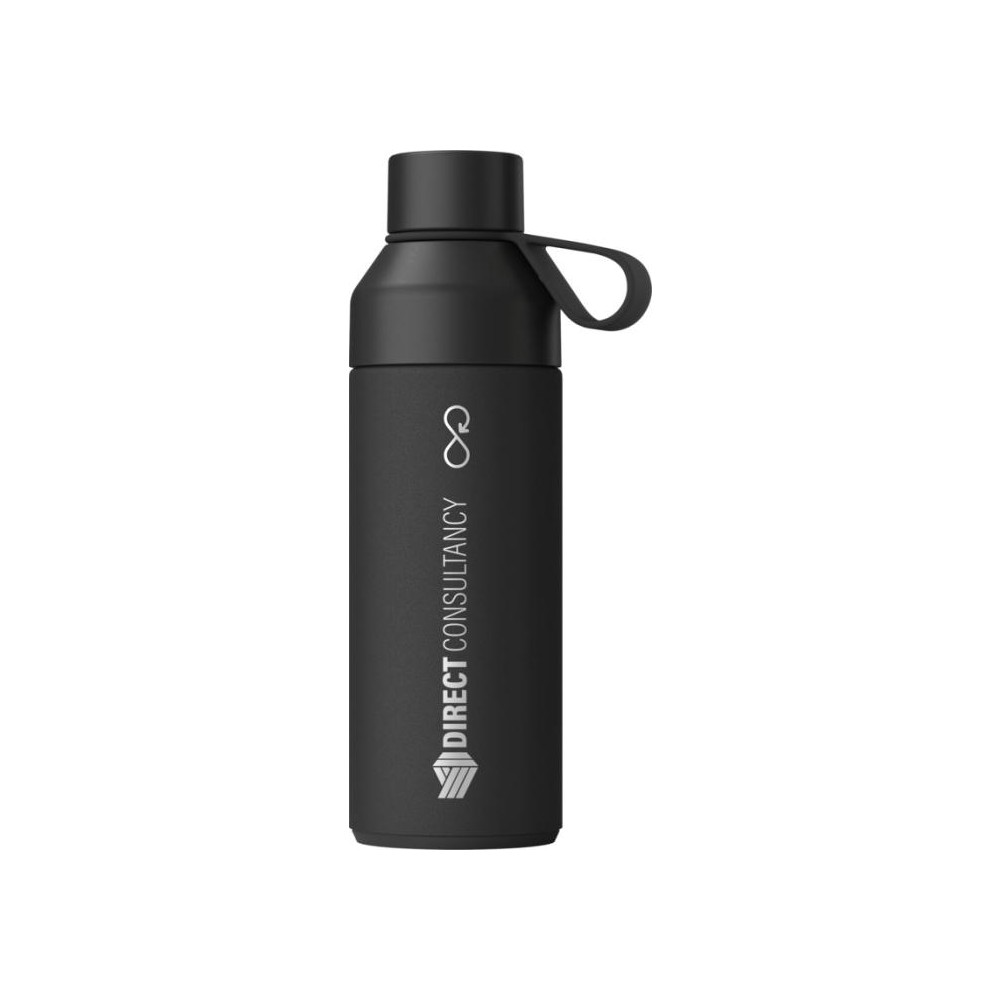 Az 500 ml-es, vákuumszigetelt Ocean Bottle az italokat akár nyolc órán át melegen, és akár tizennyolc órán át hidegen tartja. Minden Ocean Bottle teljesen szénsemleges, és gyártása során 1000 műanyag palack kerül összegyűjtésre, hogy javítsa a tengerparti közösségek megélhetését. A palack újrahasznosított rozsdamentes acélt és újrahasznosított óceánhoz kötődő műanyagot tartalmaz, és az NFC Smart Chip lehetővé teszi, hogy minden újratöltéskor több műanyagot gyűjtsön össze . A kettős nyílás megkönnyíti a palack tisztítását és feltöltését, a szivárgásgátló fedél pedig könnyen szállítható hurokkal rendelkezik. A palack mosogatógépben mosható és BPA-mentes. 70% újrahasznosított rozsdamentes acél és 10% PET műanyag és 10% újrahasznosított PET műanyag és 10% szilikon műanyag. Emblémázás: Gravírozás, Tamponnyomás
