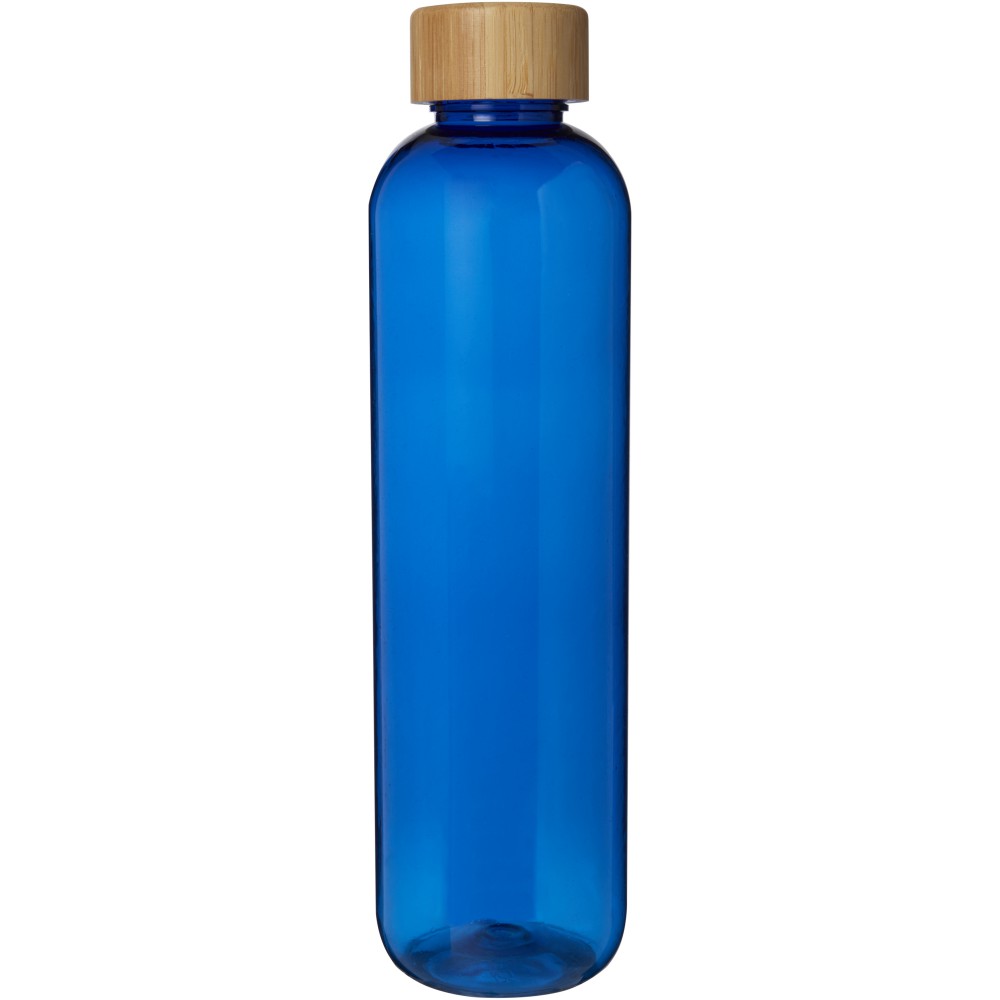 Újrahasznosított műanyagból készült vizes palack, stílusos bambuszfedéllel. A palack BPA-mentes, a német élelmiszer-biztonsági jogszabályok (LFGB) valamint REACH-szabályozás szerinti ftalát-tartalomra tesztelt és jóváhagyott. A bambusz fenntartható, környezetileg és társadalmilag felelős forrásból származik. Mosogatógépben nem mosható. Újrahasznosított kartonból készült díszdobozban szállítjuk. Nagy űrtartalmú palack: 950 ml. Emblémázás: Körszita, Tamponnyomás