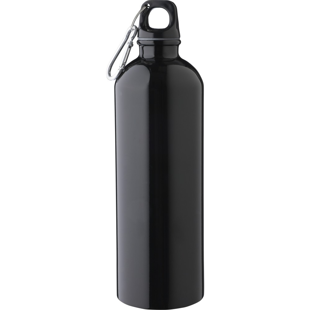 Újrahasznosított rozsdamentes acélból készült 750 ml-es szimplafalú kulacs PP kupakkal és alumínium karabinerrel. Az újrahasznosított anyagra utaló logó a palackra van gravírozva. Mosogatógépben nem tisztítható. Emblémázás: Bögredekor, Gravírozás, Körszita