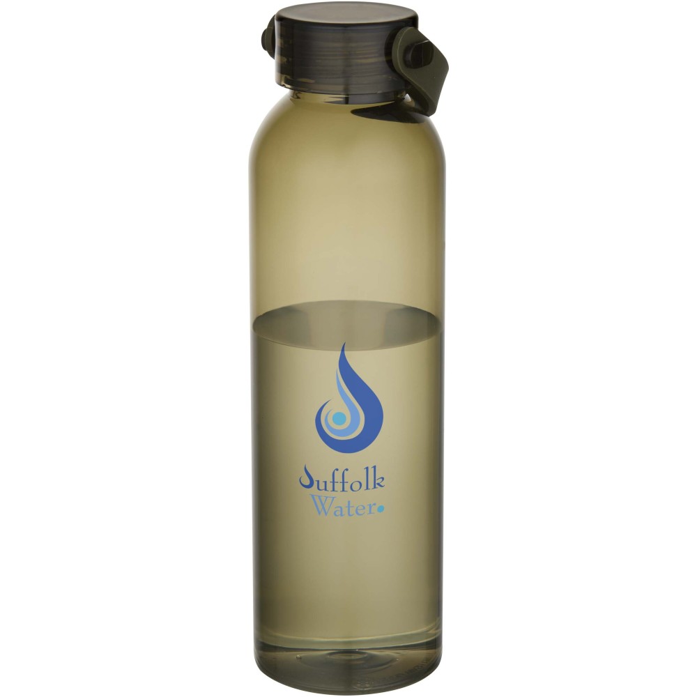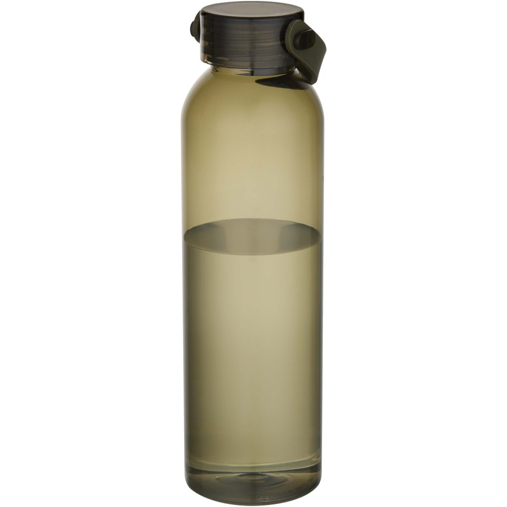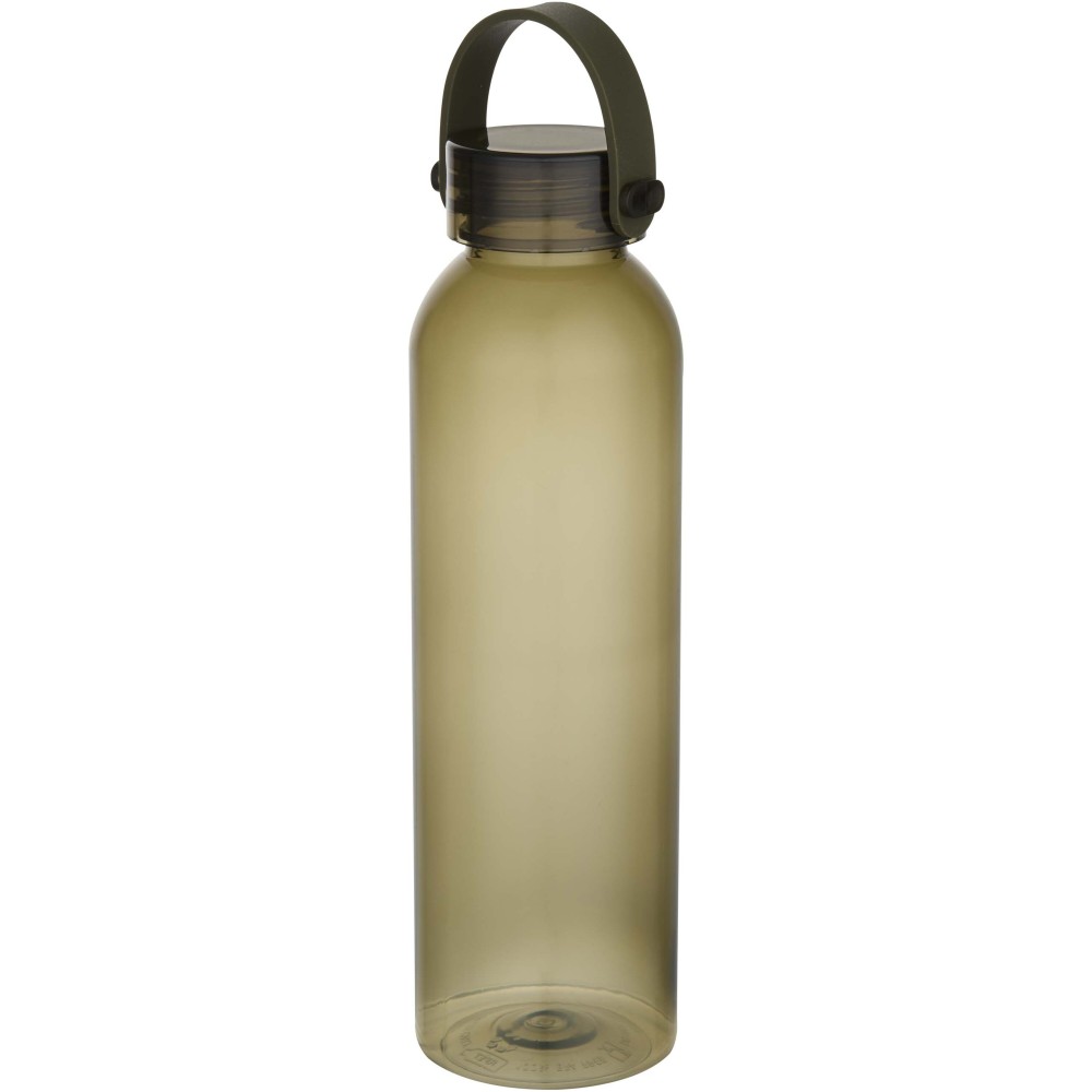 RCS tanúsítvánnyal rendelkező RPET-ből készült kulacs, praktikus szilikon hordozófüllel. Megfelel az EFSA által jóváhagyott PET-újrahasznosítási eljárásnak. Űrtartalom: 630 ml. Emblémázás: Körszita